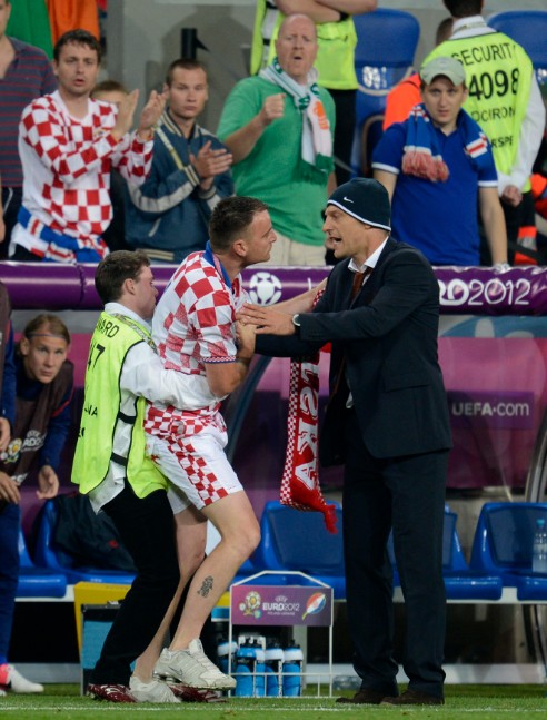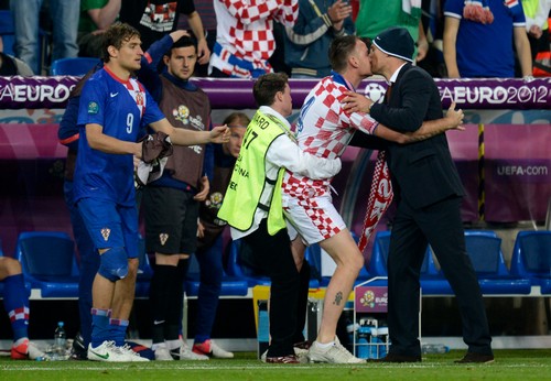 Durante il match tra Croazia ed Irlanda, un inatteso fuori programma ha attirato l’attenzione dello stadio. Un tifoso ribelle è riuscito a sfuggire alla rete di sicurezza raggiungendo indisturbato la panchina croata e stampando un bel bacio sulle labbra all’allenatore Slaven Bilic. Un portafortuna che ha sortito esiti positivi visto che la formazione balcanica si è imposta per 3 – 1 sui rivali. E se diventasse un rito propiziatorio ben augurante per i prossimi incontri?