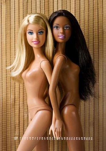 La Barbie appare completamente nuda, sensuale ed in compagnia di un’altra “modella” d’eccezione, sempre di plastica, ma dalla pelle ambrata. Per entrambe, nulla da invidiare alle colleghe in carne ed ossa: un bel sorriso, lunghi capelli fluenti e curve sinuose. Così i due artisti hanno commentato la loro rivoluzionaria opera: