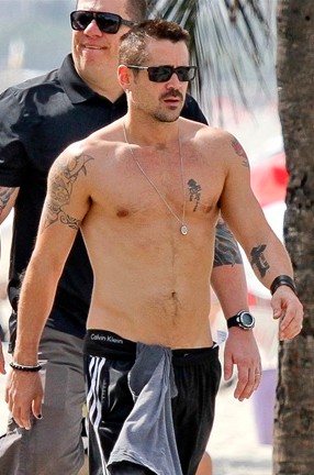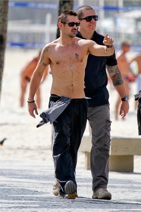 Colin Farrell a petto nudo per le vie di Rio (foto) Gallery Icone Gay Era da un po’ di tempo che avevamo perso le sue tracce. Colin Farrell è stato fotografato a Rio De Janiero assieme alla sorella Claudine voglioso di recuperare le forze dopo le riprese del suo ultimo film, Total Recall – Atto di Forza, nelle sale italiane dal prossimo 28 settembre. Fisico curatissimo, qualche peletto sul ventre (che non guasta mai) e tatuaggi in bella vista per la gioia dei brasiliani. Abbigliamento molto sportivo e informale per il bel Colin che sfoggia anche un bel boxer Calvin Klein nero. Chi non vorrebbe un accompagnatore del genere per le passeggiate in spiaggia…