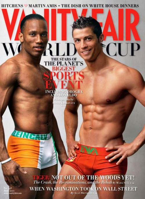 Il portoghese Cristiano Ronaldo, l’ivoriano Didier Drogba, il camerunense Samuel Eto’o , i brasiliani Kaká e Pato, il ghanese Muntari e dello statunitense Donovan hanno posato per il numero di giugno del magazine Vanity Fair, con solo i boxer su cui sono disegnate (dai più grandi stilisti) le bandiere dei propri Paesi d’appartenenza. Un’occasione unica per vedere i fisicacci dei sette calciatori nel massimo splendore e slancio sportivo. Dopo il salto, rifatevi gli occhi con la gallery ed il backstage del servizio fotografico.