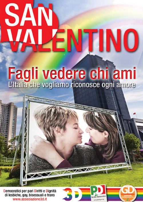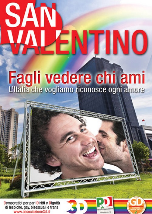 Fagli vedere chi ami, la campagna di Pd Bologna e 3D per San Valentino Cultura Gay Gallery Porta per titolo, Fagli vedere chi ami, la nuova campagna di 3D-Democratici per Pari Diritti e Dignità di lesbiche, gay, bisessuali e trans e Pd Bologna per la festa di San Valentino. Manifesti, cartoline, volantini saranno diffusi davanti alle scuole e alle università dell’Emilia-Romagna per sensibilizzare sulle tematiche lgbt. Daniela Vannini, responsabile Diritti dei Democratici bolognesi, ha spiegato le motivazioni dell’iniziativa: