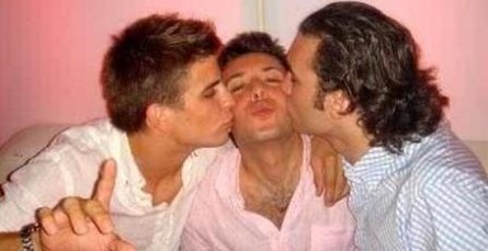 In una foto si vede Piqué abbracciato ad un altro ragazzo con una posa un po’ da bimbominkia (avete presente quelle odiose labbra a culo di gallina?), nella seconda si vede sempre Piqué intento a dare un bacio sulla guancia (contemporaneamente ad un terzo ‘masculo’) allo stesso ragazzo che stava abbracciando nel primo scatto.