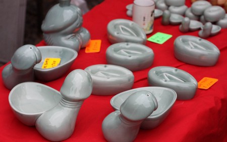 Un pene dalle dimensioni gigantesche, intagliato nel tronco di un cipresso, dal peso di circa 300 chili (ben più grande, quindi, del 25×25 di Mukhtar Safarov). Anche le bancarelle riprendono il tema della manifestazione (che quest’anno offre grande spazio anche alla vagina), offrendo chicche davvero particolarissime provenienti da tutte le parti del mondo.