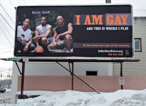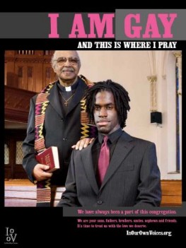 Un cartellone presenta tre uomini di colore su un campo da basket con la didascalia: “Io sono gay, e questo è dove gioco”. Un ministro nero in possesso di una Bibbia e un parrocchiano nero all’interno di una chiesa sono fotografati assieme alla dicitura: “Io sono gay , ed è qui che io prego”. Il consigliere comunale Joseph Allen ha espresso la propria contarietà all’iniziativa pur ribadendo di non avere nulla contro i neri e i gay (Fonte Times Union):