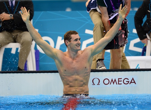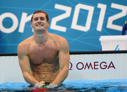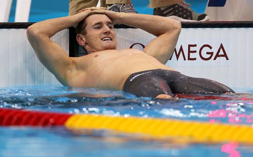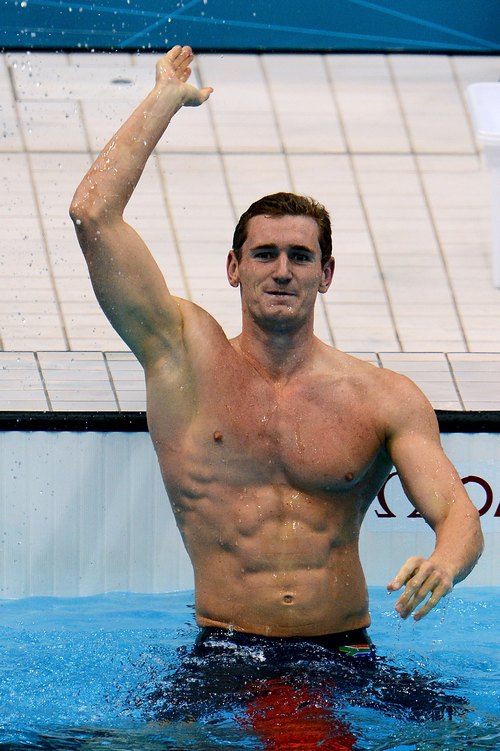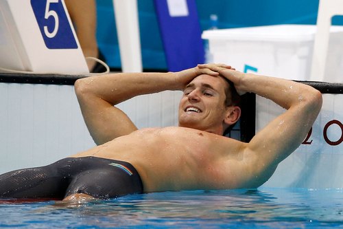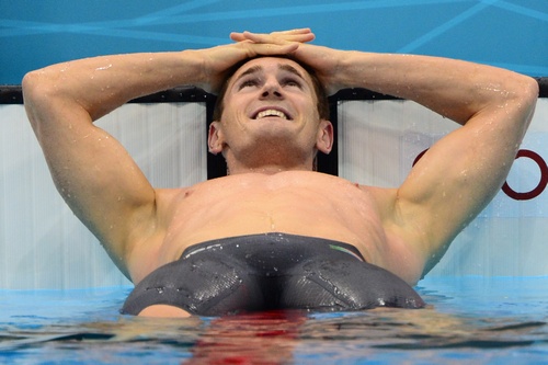 In attesa della finale olimpica dei 100 rana, vi mostriamo il vincitore della semifinale: Cameron van der Burgh. Il 24enne sudafricano, merito della sua composta quanto sexy esultanza, ha fatto felici molti telespettatori distendendosi a gambe aperte in acqua.