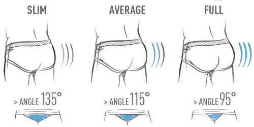 Si può scegliere l’ampiezza dell’angolo, dipende da quanta roba c’è: la scelta varia dai 135 ° per un fondoschiena slim, a 115 ° per un medium, o 95 ° per un large.