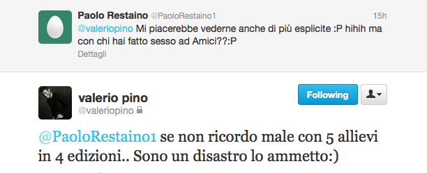 Valerio Pino hot parte seconda. Non pago delle foto mostrate ieri sul profilo Twitter, l’ex ballerino di amici ha deciso di spingersi oltre postandone altre che lasciano davvero poco all’immaginazione. Oltre agli scatti a luci rosse ha anche accontentato la curiosità dei followers che gli chiedevano con quanti allievi del talent show di Canale 5 avesse fatto sesso: